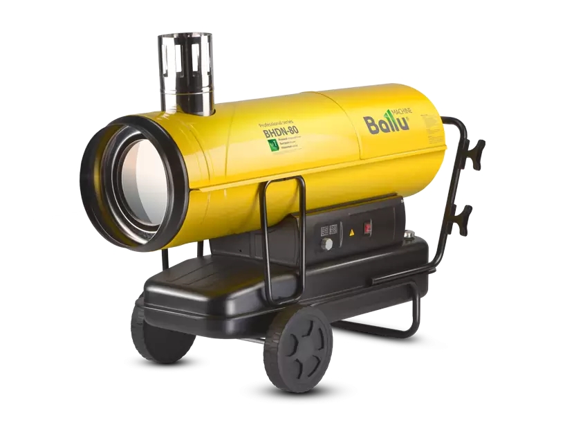 Дизельная тепловая пушка непрямого нагрева Ballu BHDN-80 - предназначены для работы как при строительстве или ремонте в производственных помещениях и на открытых площадках, так и в жилых помещениях. Пушки серии оснащены теплообменником из высококачественной нержавеющей стали марки AISI 310S, разделяющим зоны горения топлива и нагрева воздуха. Благодаря данному трехходовому теплообменнику, КПД работы теплогенератора достигает уровня до 85%. Приборы серии вырабатывают от 20 до 80 кВт тепла в зависимости от модели, что позволяет обогреть до 800 м² помещения. Уникальная конструкция позволяет отводить продукты сгорания за пределы обогреваемого помещения. Для максимальной безопасности пушки оснащены системой защиты от перегрева, контролем стабилизации пламени.