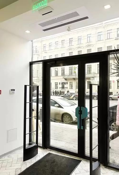 - Для защиты дверных проемов (оборудованных тамбуром) высотой от 2 до 2,5 метров магазинов, офисов, общественных зданий