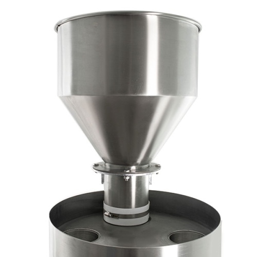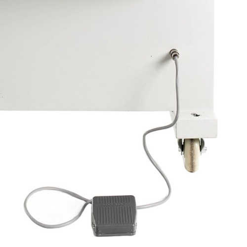 Модель оснащена кнопочной панелью и ножной педалью управления и 4 колесами с тормозной системой. Корпус выполнен из окрашенной стали, бункер, направляющие, дозирующие стаканы и другие части, контактирующие с продуктом, - из нержавеющей стали.