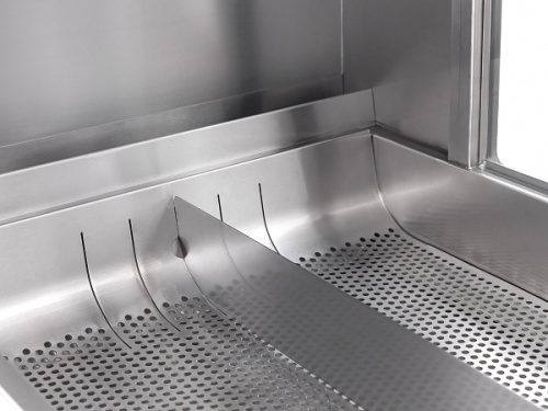 Модель оснащена поперечным разделителем, что позволяет хранить несколько видов продуктов, и светодиодной подсветкой. Корпус выполнен из нержавеющей стали, отдельные элементы - из коррозионностойкой стали AISI 304.
