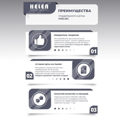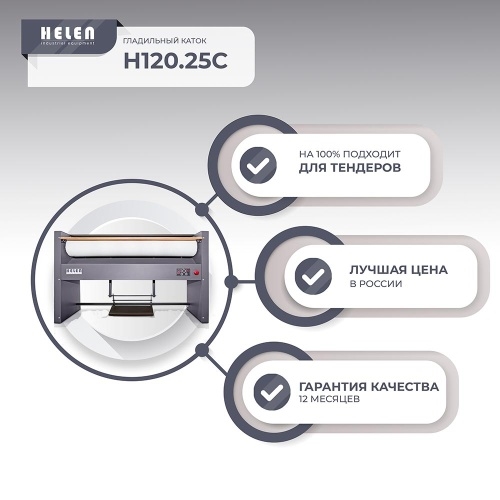 Каток гладильный HELEN H120.25C используется в прачечных, химчистках и отелях.