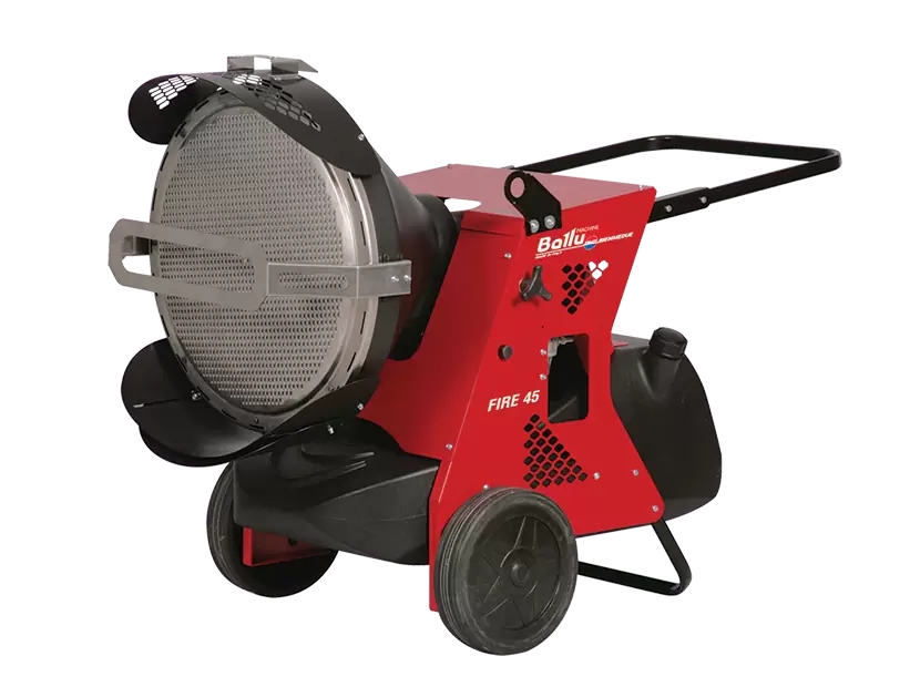 Инфракрасный дизельный обогреватель модели Ballu-Biemmedue FIRE 45 1 SPEED станет удачным решением вопроса обогрева помещения, особенно если пользователь часто нередко дело с необходимостью просушки окрашенных или лакированных поверхностей, где крайне нежелательно поднимать пыль, что обусловлено самим принципом действия оборудования – прибор работает исключительно на ИК-излучении и не вызывает интенсивного движения воздуха. Это положительно также сказывается на шумовой экологии обслуживаемого помещения (оборудование работает практически беззвучно).