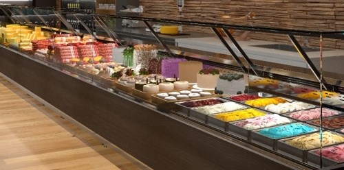 Серия Vista позволяет собирать сложные линейки, состоящие из разных типов витрин — от тепловых до низкотемпературных.