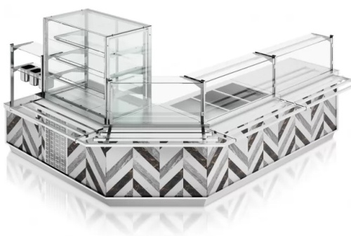 Серия Vista позволяет собирать сложные линейки, состоящие из разных типов витрин — от тепловых до низкотемпературных.