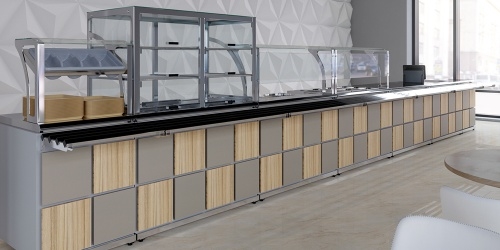 Линии раздачи Luxstahl Premium — это оригинальный дизайн, любые цвета по RAL и огромный выбор материалов фасадов: ДСП; ЛДСП; МДФ; массив древесины; нержавеющая сталь и другие. Основной акцент в конструкторских и дизайнерских решениях линии раздачи Luxstahl Premium сделан на максимальном удовлетворении запроса бизнеса на персонализацию и индивидуальность.