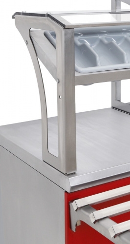 Прилавок кассовый Luxstahl КК-1200 используется в составе линий раздач.