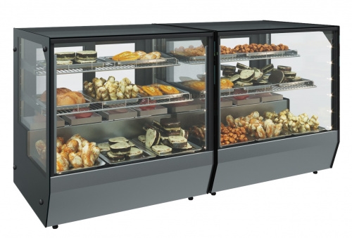 Модель оснащена стеклопакетом, раздвижными задними дверцами и 2 охлаждаемыми полками-решетками с ограничителями. Благодаря универсальному исполнению витрина может встраиваться в барную стойку или располагаться на ней. Корпус выполнен из стали с ППУ-теплоизоляцией, экспозиционная поверхность - из нержавеющей стали.