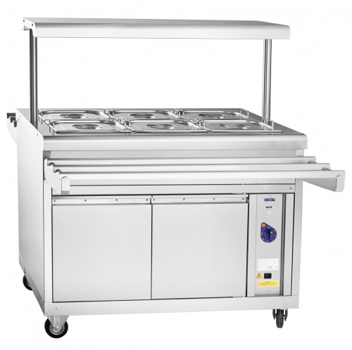Мармит 2-х блюд Abat ЭМК-70ПМ используется в передвижной линии самообслуживания для непродолжительного сохранения первых и вторых блюд в гастроёмкостях в горячем состоянии, а также для раздачи их потребителям.