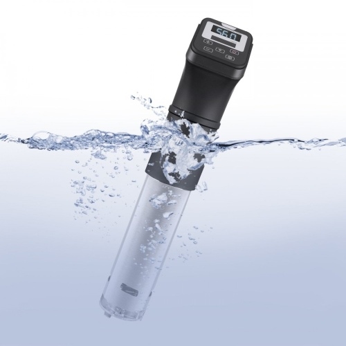 Управление устройством осуществляется за счет светодиодной панели, достаточно выбрать подходящие параметры и нажать на кнопку запуска (возможно удаленное управление через приложение CASO Control App). Если необходимо сменить программу приготовления (время термообработки или температуру), то задать новые параметры можно без остановки работы термостата. Устройство отвечает требованиям качества и безопасности, имеет сертификацию GS/CE и сертификат водонепроницаемости IPX-7.
