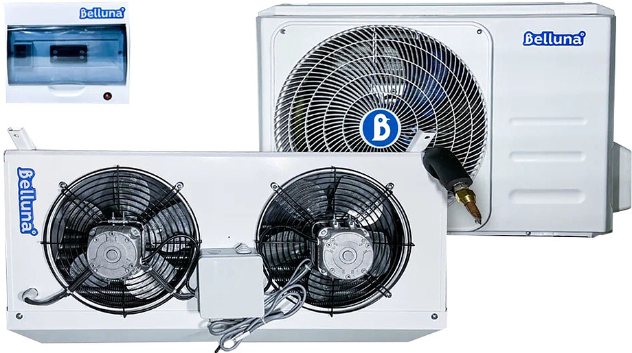 Сплит-система Belluna P310 серии Инвертор Профи предназначена для поддержания необходимого температурного режима в холодильных камерах на предприятиях пищевой промышленности, общественного питания и цветочных магазинах. Холодильная машина состоит из наружного блока, внутреннего блока и щита управления. Для работы сплит-системы толщина пенополиуретановых панелей в холодильной камере должна быть не менее 80 мм.