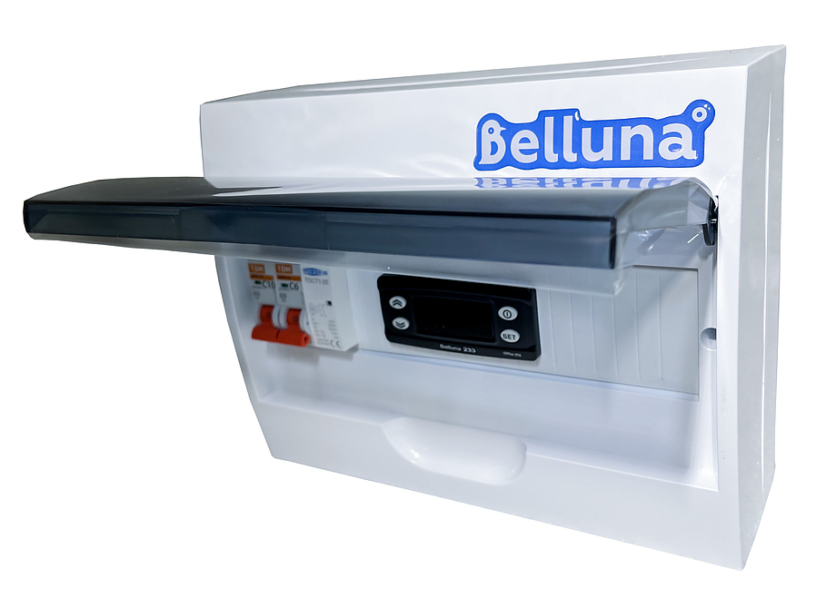 - Регулирование температуры воздуха в охлаждаемом объеме и автоматическое поддержание заданной температуры с точностью дифференциала (2,0 °С) производится с помощью регулятора температуры (контроллера Belluna 233), датчик которого размещен внутри охлаждаемого объема