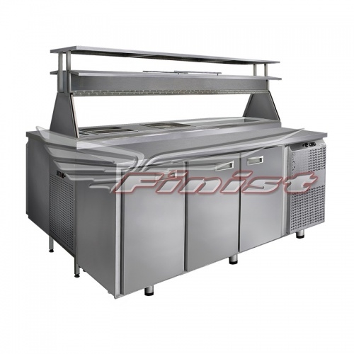 холодильный стол, выполняемый по индивидуальному заказу с дверями или ящиками. Используется для хранения подготовленных полуфабрикатов и заготовок. На столешнице происходит сборка готовых блюд.