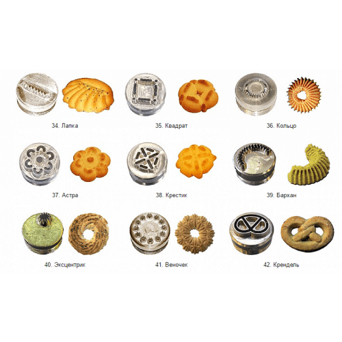 Может работать с разным тестом, например: заварное и песочное, бисквит, кексы и другими массами. За счет большого ассортимента насадок (фильер) а так же их вращения, Вы можете значительно увеличить ассортимент изготавливаемой продукции.