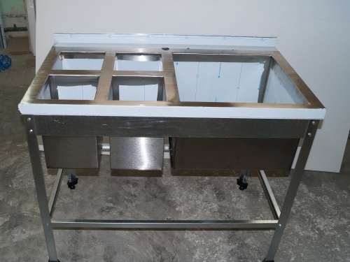 Ванна моечная сварная для мойки яйц RESTOINOX ВМСЯ-1/5-Б-ЭН+ВМС-1/5-Б-ЭН-304 используется в моечном отделении предприятия общественного питания.