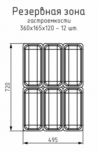 - Размер гастроемкостей: 360x165x120 мм